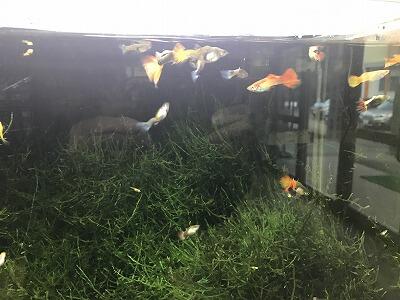 ※教頭先生が6月にグッピーの雄と雌を5匹ずつ、コリドラスを1匹買ってきましたグッピーが卵を産み、見事にふ化し、今では沢山の稚魚が元気に泳ぎ回っています。