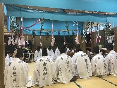 尾向地区の各集落で行われてきた神楽も、この日当神楽をもって終了です。たくさんの方々が見守る中、日当地区の小中学生も地域の一員として堂々と舞を披露しました。