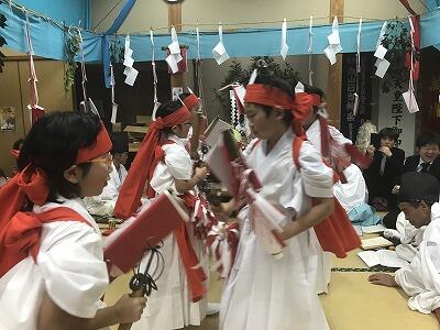 【子ども神楽では、小学生、中学生も舞ました】↓