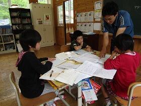 今日は5・6年生が朝から集合学習でいませんが、1~4年生はその分も頑張って勉強に打ち込んでいました。2時間目をのぞいてみると、1年生は国語で「おおきなかぶ」、2年生は算数で「かくれた数はいくつ」、3・4年生は国語で「新聞作り」をしていました。校内放送も4年生が上手に代わりを務めてくれています。
