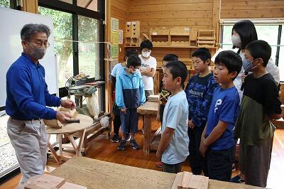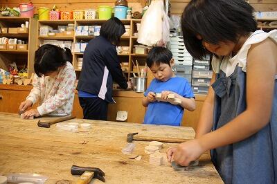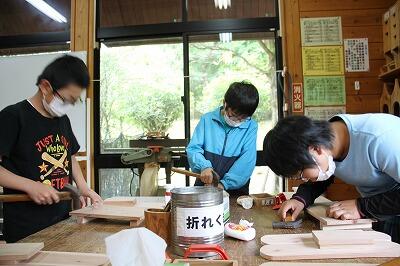 森の科学館では、木工作品作りに挑戦しました。1~3年生は子犬、4年生以上はプランターを作りました。指導員の方に教えていただきながら真剣な表情で木工に取り組みました。ものづくりの貴重な体験ができました。