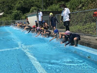 5月27日のプール清掃から2週間、昨日の3校時にプール開きを実施しました。
