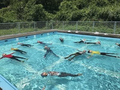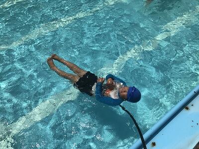 後半からは、ズボンを浮き輪代わりにしたり、ペットボトルやビニール袋を浮き輪代わりにして、命を守るための泳法を学ぶ良い時間となりました。