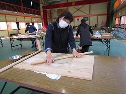 11月23日(月)勤労感謝の日、休日にも関わらず、たくさんの保護者の方々による収穫祭前日準備が行われました。朝早くから、お母さん方はそばの粉を練る・延ばす・切る等の作業や出汁作りを中心に、お父さん方は会場作りやまき作り等の作業をされました。夕方までかかって全て準備が整いました。本当にご苦労さまでした。