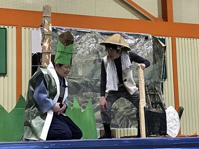 【PTAの皆さんの劇「竹太郎」と合唱「ひまわりの約束」の様子】↓