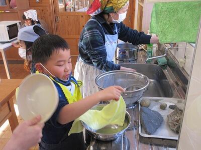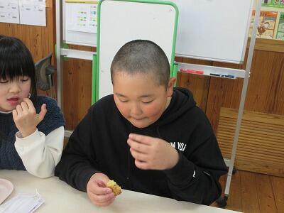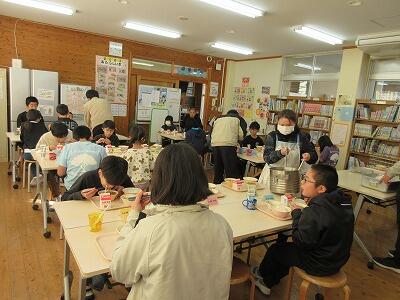 そば打ち体験では、講師や保護者の方々に手順を教えていただきながら活動をし、そばを打った後、全員で試食を行いました。自分たちで栽培したそばの味は格別のようでした。子どもたちは、これまでの活動を思い出しながら、おいしくそばをいただいていました。