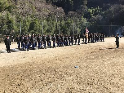 午後からは、尾向小学校運動場では、1月6日(月)の「椎葉村消防出初め式」に向けた尾向小校区の第10部、第11部の練習が行われていました。