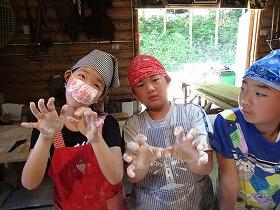 交流椎葉2日目は、地域にある焼き畑保存会が運営する施設で、そば打ち・青竹炊飯・こんにゃく作り・竹細工等の体験学習を行いました。草川小学校の子ども達にとってはどれも初めて体験するもばかりで、目を輝かせて活動し、椎葉の自然の恵みをお腹いっぱいいただきました。お世話をしてくださった地域の方々、ご協力頂いた保護者の皆様、本当にありがとうございました。