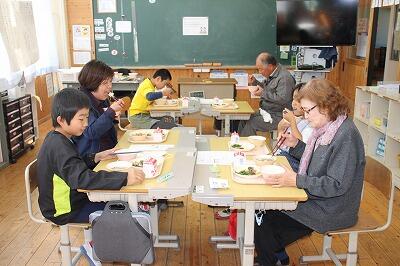そば打ち体験では、講師や保護者の方々に手順を教えていただきながら活動をし、そばを打った後、全員で試食を行いました。自分たちで栽培したそばの味は格別のようでした。子どもたちは、これまでの活動を思い出しながら、おいしくそばをいただいていました。
