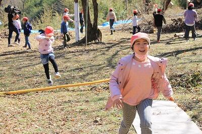 昼食を食べた後は、宝探しをしました。お別れ遠足の宝探しはかなり昔からの伝統のようです。子どもたちは必死になって隠された色画用紙を探していました。何とか全員が宝を見付けることができました。