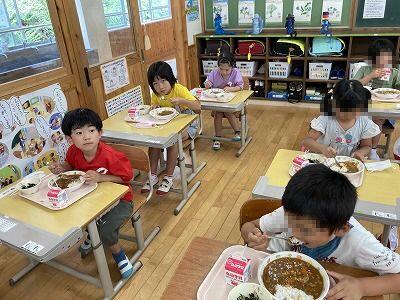 1年生は生活(あそびばにでかけよう)・学級活動(食育)・体育(水遊び)の学習、2年生は学級活動(食育)・体育(水遊び)・算数・生活(まちたんけん)の学習です。他にも、給食を一緒に食べたり昼休みに遊んだりします。