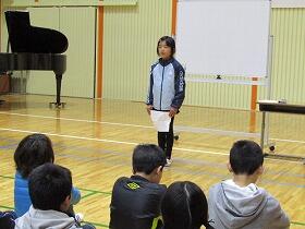 1校時の始業式では、代表の児童が大きな声で堂々と今年の目標を発表してくれました。私は「努力はたし算」「協力はかけ算」という題で、努力した結果はたし算の答えのように必ず増えること、協力すればその結果は何倍にも増えること等を話しました。その後のまなび・こころ・からだに関する先生方のお話も子ども達は真剣に聴いていました。