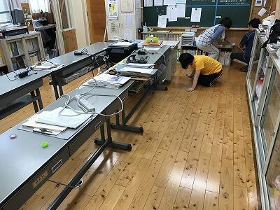 夏休みに入ってからも、先生方は、土、日以外は毎日勤務しています。夏休みにしかできない、研修を行ったり、学校内の備品整理や普段できない清掃・片付け等を行い、2学期の始業の日に備えています。