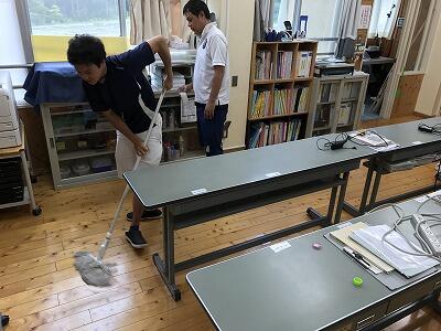 下の写真は、職員室清掃・ワックスがけの様子です。