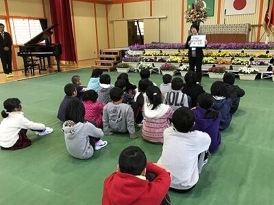 真っ赤に色いた葉も落ち始めています。登校後、子どもたちは白い息を吐きながら、落ち葉を集めてきれいにする。運動会、150周年記念式典、収穫祭など、たくさんの行事があった2学期でした。一つ一つの行事を通して、学ぶことが多く、実り多い2学期となりました。冬休みまであと数日ですが、友達と仲良く楽しく学校生活を送り、元気に冬休みを迎えてほしいと思います。