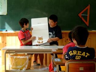 ・ 本校では、読書活動に力を入れています。子ども達が、自分から本を読むようになるための手立てを講じています。図書室をあたたかみの感じられるように整備したり、子ども自らが購入図書を選定したり、保護者のボランティアによるさまざまな取組をしてもらったりしています。今日は、図書委員の児童が、他学年の読み聞かせをしてくれました。