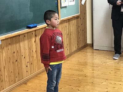 【終業式では、1年生の代表児童が2学期の反省を、原稿を見ることなく、自分の言葉でしっかり発表することができました】↓