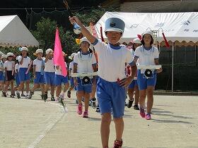 今日の午前中、運動会に向けての最後の仕上げの練習が行われました。子ども達が単独で行う全ての種目を通してやってみました。鼓笛についても最終チェックを行いました。その後地区の方を講師に招き、「ひえつき節」の練習も行いました。