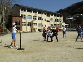 運動場に春の暖かな日差しがふりそそぐ中、子ども達が全員で「Tボール」を楽しんでいました。卒業式まであとわずか。6年生と遊べるのもあとあずかです。寂しいです。