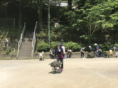 校内の側溝の土上げや草刈り、旧校舎跡地の草刈りを約2時間、頑張っていただきました。おかげで校内がスッキリなりました。ありがとうございました。