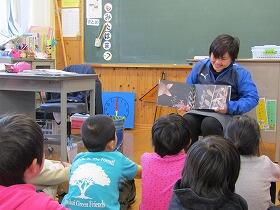 参観日の午後、本校の学習ボランティアの方々による読み聞かせが行われました。3人のお母さんが代わる代わる読み聞かせをしてくださいました。子ども達は笑ったり、ゴクッとつばを飲み込んだりしながら、集中して聞いていました。