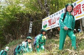 爽やかな風の吹き抜ける春の日、「扇山山開き」に尾向小緑の少年団が参加しました。開会式では、代表が「山の誓い」を述べ、テープカットをしました。