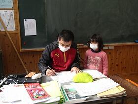 PS: 休日なので、近所の中学生が「6年生が一人で淋しいだろう」と5・6年教室に来て、勉強を見てくれていました。尾向小学校らしい心温まる一コマでした。