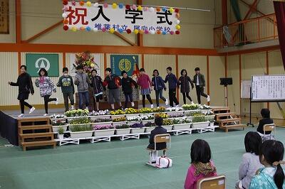 教育長職務代理者 尾前賢了様、地域振興課長 甲斐万寿也様をはじめ、多数のご来賓の皆様が見守られる中、甲斐こころさん、石井敦大くん 2名の入学式を行うことができました。式では、5.6年生による歓迎のお祝いの言葉や、全校児童によるお祝いの歌でお迎えすることができました。