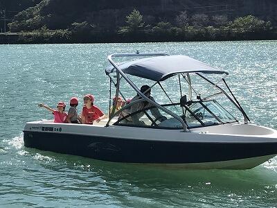 森の科学館では、木工体験で犬、バッタを作り、レイクランドでは昼食後、遊具で自由時間とおやつタイム、そして、一番楽しみにしていたクルージング体験をしました。
