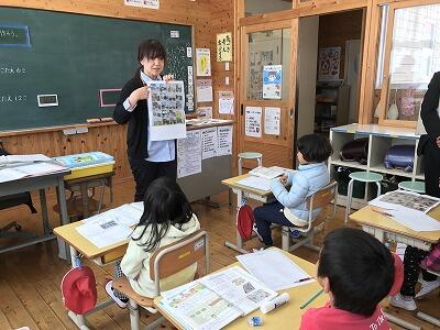 今日は、低学年(1.2年生)の集合学習が、椎葉小学校で行われています。