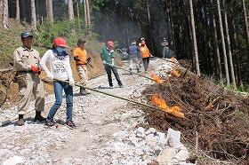 7月の長雨の影響で延期になっていた「子ども焼畑体験学習『火入れ・種まき』」を実施しました。焼畑地では、火入れの神事・祈りの後、6年生3人が代表して火を入れました。火の勢いがよく、焼畑地全体がきれいに焼けました。昼食後、そばの種を植えました。地面に火の温もりが残る中、子どもたちが種をまき、保護者が箒でや竹で灰をかぶせていきました。焼畑を提供していただいた椎葉様、保護者や青年団、消防団の皆様の協力のもと、しっかり取り組むことができました。様々な方々のご協力に感謝します。ありがとうございました。