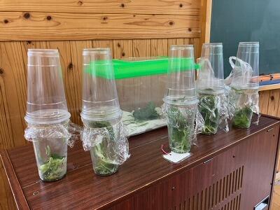 3年生が理科の学習でモンシロチョウの幼虫を育てています。