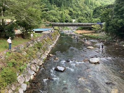 写真は、台風通過後(19日)の川の様子です。比較のため、8月の渓谷祭りの際の写真も下に掲載します。ほぼ同じ場所です。自然の脅威を感じます。