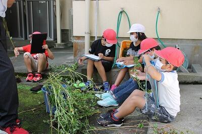 計画ではソバを植えた現地に行って観察する予定でしたが、台風の被害を考慮し校内での観察となりました。