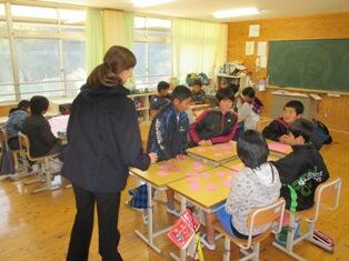 ・ 今日はALTの先生が来校してくださいました。授業では、高学年の子ども達に「カードゲーム」を教えて下さっていました。子ども達はグループごとにとても楽しそうに活動していました。