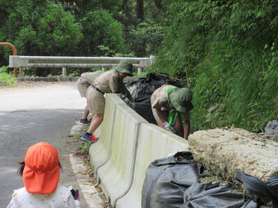 6月16日(日)は、緑の少年団クリーン活動を行いました。全校児童を4班に分け、それぞれ職員と保護者がついて、分かれて地区のゴミ拾い活動を行いました。