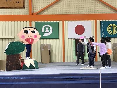 2学期終わりから、練習を重ねてきて、今日は、ステージでの立つ位置や台詞、細かい動き等の確認することができました。