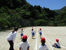 1・2年生は、5・6年生が引いてくれたコースで元気にかけっこの練習をしていました。