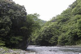 3日目も好天に恵まれ、尾向小5・6年生9名と草川小5年生13名の子ども達は、学校から2kmの道のりを歩いて、尾前川のほとりの川原に向かって出かけていきました。