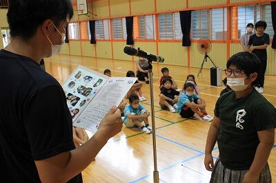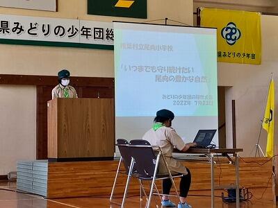 尾向小から熊本県人吉市を経由し約3時間かけて現地へ行きました。最初の活動が活動内容の発表でした。扇山登山やクリーン活動、焼畑などの活動内容を2人の6年生が発表しました。昨年度に引き続き、最優秀賞を受賞することができました。