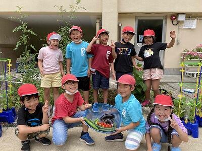 1・2年生が生活科で育ててきた夏野菜が実りました。