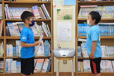 はじめに、3年生の代表児童が作文を発表しました。がんばったこととして、「協力し合ったこと」「本をたくさん読んだこと」「歩いて帰ったこと」を挙げ、2学期もがんばりたいという決意を堂々と発表することができました。