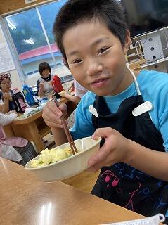 今回は、「ごはんとみそ汁」です。ふだんからお手伝いをしている子が多いようで、慣れた手つきで調理する様子が見られました。料理は「自立」の第一歩ですね。