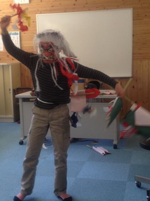 ・ 子ども達が「遊び」の中で「神楽クラブ」をつくり、楽しんでいます。12月に行われる地区の神楽では、小学生も神楽を奉納することを以前お伝えしましたが、この「神楽クラブ」は子ども達が「遊び感覚」で活動しているものです。下の写真は、今日の放課後に子ども達がしていたのを写したものです。次の夏の渓谷祭りでは、オムザイル神楽としてやってもらうよう頼んだところでした。