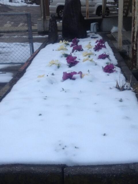 ・ 今日は日曜日です。先週の木曜日の雪のため、結局、金曜日は臨時休業としました。雪による路面凍結と停電も起きてしまったからです。写真は、今日撮った花壇と体育館の横の様子です。