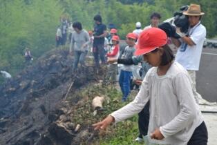 今年の場所は、杉の木の植栽等をしていない「やぼ」でしたので、事前に2回そのやぼを切る作業をしました。その後は、大雨などもなかったため、かなり燃えるだろうという予想をしていましたが、切った木の量が思っていた以上に多かったのと、完全に乾燥していない木もあったことなどから、かなり手こずりました。でも、保護者の皆さんのご苦労とご協力により、今回も無事に終了することが出来ました。28日に予定を変更する連絡をしていただきましたが、全員の保護者の方が参加していただき、あらためて本地区の協力体制の良さを感じたところでした。ありがとうございました。