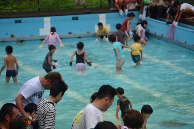 ・ 15日に本校を主会場に開催された渓谷祭りも、賑やかに盛り上がった中で終了することが出来ました。役員の皆様、地域の皆様本当にご苦労さまでした。今回は、小雨が降ることもあったため、ステージの部は体育館にて行いましたが、多くの方々に来ていただきました。写真は、やまめ、にじますのつかみ取り大会の様子です。