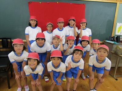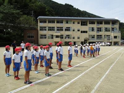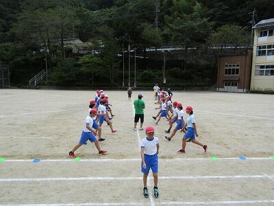 9月16日(水)久しぶりに朝から雨模様。しかし、全校体育の頃には雨も上がり、水はけのよい尾向小運動場はベストコンディション。