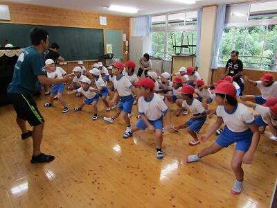 今日は鼓笛の練習の後、地区の方を講師に招いて「ひえつき節」の練習をしました。最初はぎこちなかった子ども達ですが、指導を受ける内に昨年までの教えを思い出し、上手に踊っていました。