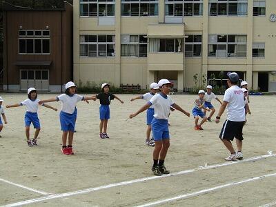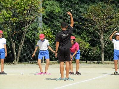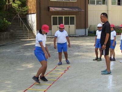 9月10日(木)5校時、今日から尾向小に県の体育指導教員の先生が来られ、5・6年生に陸上競技の指導が始まりました。10月初旬までの期間に計4日間尾向小で指導をしてくださいます。